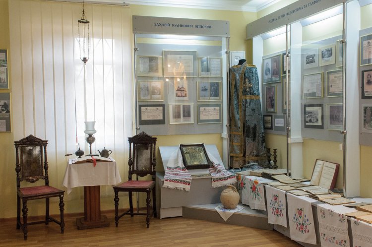 Матеріали музейної експозиції висвітлюють головні аспекти життєвого і творчого шляху Михайла Грушевського, його родинні корені. Історико-етнографічний комплекс характеризує с. Сестринівку другої половини ХІХ століття, коли туди приїздив Михайло Грушевський. В експозиції представлено родовід Оппокових, висвітлено роль діда Захарія Оппокова, священника Покровської церкви с. Сестринівка, в становленні світогляду молодого Михайла Грушевського. Свідки тогочасних подій – світлини і документи батьків, братів і сестер – розкривають величезну родинну шану, яку Михайло Сергійович сповідував до кінця своїх днів, опікуючись своїми рідними і близькими.