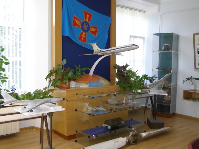 Музейна експозиція відображає історію авіації та космонавтики України за розділами: «Зародження і початковий період розвитку авіації», «Військова авіація», «Авіація України на сучасному етапі», «Внесок України в становлення та розвиток космонавтики».