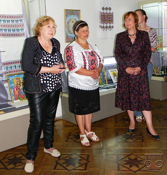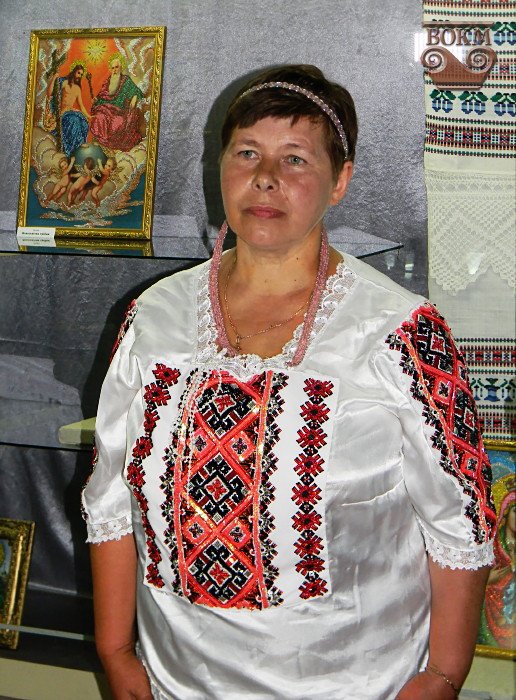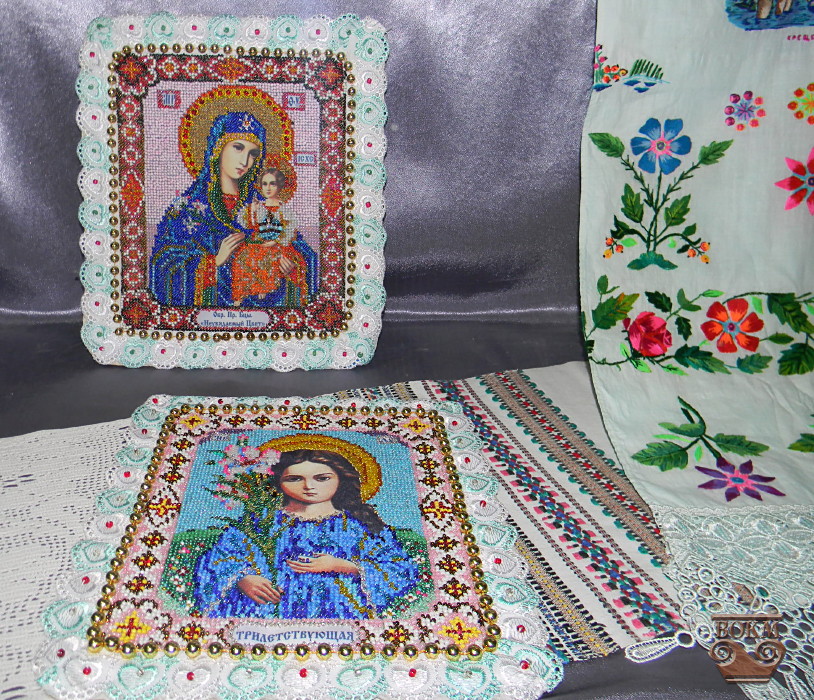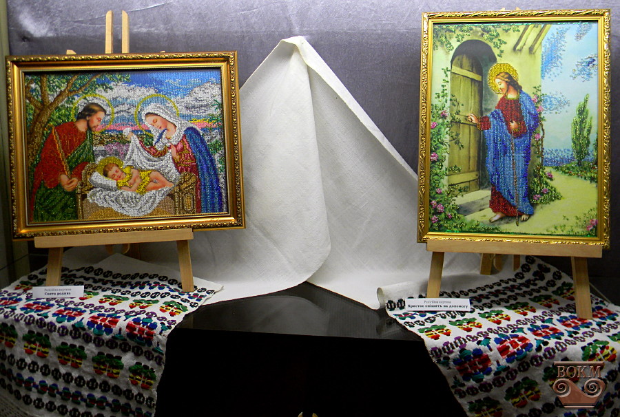 Любов Миколаївна Бурлака, бібліотекар з Демівки Чечельницького району Вінницької області, кожну хвилину свого вільного часу присвячує вишивці бісером – вона створює прекрасні орнаменти на рушниках, вишиває сорочки, картини, проте більшу частку її доробку складають ікони. Майстриня виплекала у своїх вмілих руках вже більш як сто образів, але після освячення у церкві вони вже знайшли своїх власників. Серед ікон, представлених на виставці – ікона Св. Миколая, особливо шанованого українськими козаками, кошти від продажу якої призначені для відправлення учасникам АТО.