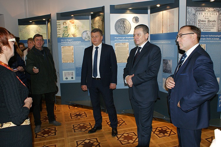 24 листопада голова Вінницької обласної державної адміністрації Валерій Коровій та Вінницький міський голова Сергій Моргунов в рамках об’їзду Вінницьких підприємств відвідали обласний краєзнавчий музей. Керівники області та міста, журналісти оглянули виставку «Саксонське дзеркало і Магдебурзьке право – основи для Європи», матеріали якої надані Центром політичної освіти землі Саксонія-Ангальт (Німеччина).