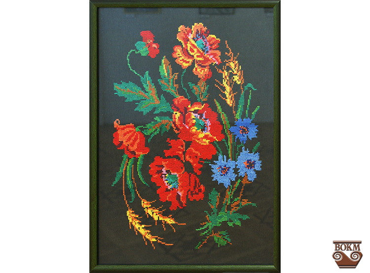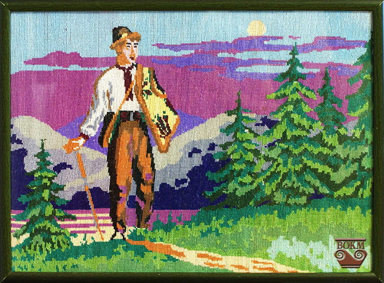 Вишиті картини стали поширеною частиною інтер’єру сільської та міської оселі у середині – другій половині ХХ століття. Вона органічно вписалася в традиційне оздоблення українського дому з рушниками, вишитими подушками, підзорами, скатерками, а пізніше – з портьєрами. Саме картини, на відміну від інших предметів, де головним декором був орнамент, мали визначене сюжетне коло – романтичні пейзажі, церкви, сентиментальні сценки за участю дітей і красунь. Особливо треба відзначити розмаїття вподобань в анімалістичному жанрі від яскравої декоративності до розчуленого замилування.