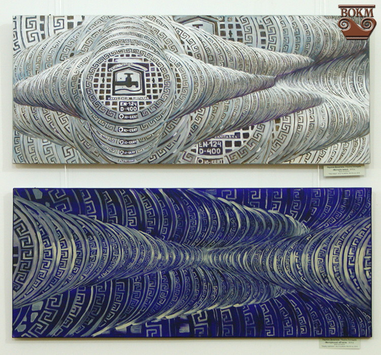 В експозиції поміщено 39 творів у різних техніках візуального мистецтва: живопис акрилами, цифровий друк, пастель, ліногравюра, олійний живопис, розпис розчинником на плиті, живопис у поєднанні з художнім склом. Кожен з авторів представляє особистий світогляд та вислів щодо сучасного середовища, як от спостереження родинних клопотів у візуальних діаграмах (В. Лучай, Й. Зак), колористичні формули явищ (Л. Гоздек, Я. Валясек), гео – чи соціо-коди (Є. Пелка, А. Барткевич, В. Вежбицкий, Р. Урбанський), візуальні ефекти (П. Домагала), абстрактні афоризми (Б. Михальський) чи поетичні метафори (В. Щепанський).