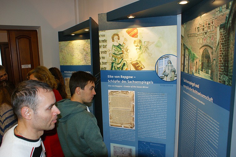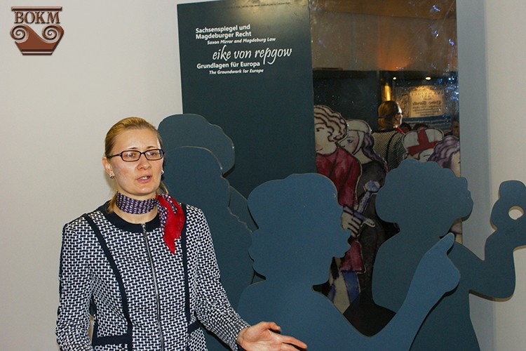 За дослідженнями сучасних істориків та лінгвістів головні витоки магдебурзького права сягають сучасної федеральної землі Саксонія-Ангальт. Столиця землі місто Магдебург представлене на виставці в якості столиці європейської правової культури Середньовіччя та раннього Нового часу. Матеріали, надані Центром політичної освіти землі Саксонія-Ангальт розповідають про джерела, історичні пам’ятки, наукові роботи, пов’язані із батьківщиною походження магдебургії. В центрі експозиції – постать Ейке фон Репкова – автора «Саксонського дзеркала», історія виникнення та поширення збірника і магдебурзького права в Європі.