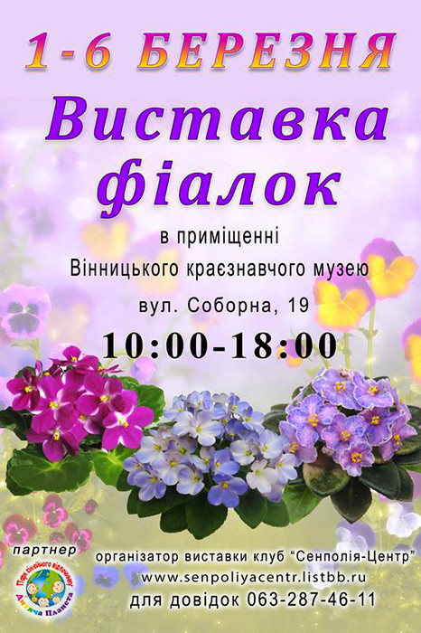 Для участі у виставці готуються сотні сортів мініатюрних та стандартних розмірів! Вінничани та гості міста зможуть не лише насолодитись красою кімнатних квітів, оцінити різноманіття форм та розмірів, кольорів та відтінків а також отримати детальну пораду з питань агротехніки вирощування фіалок.