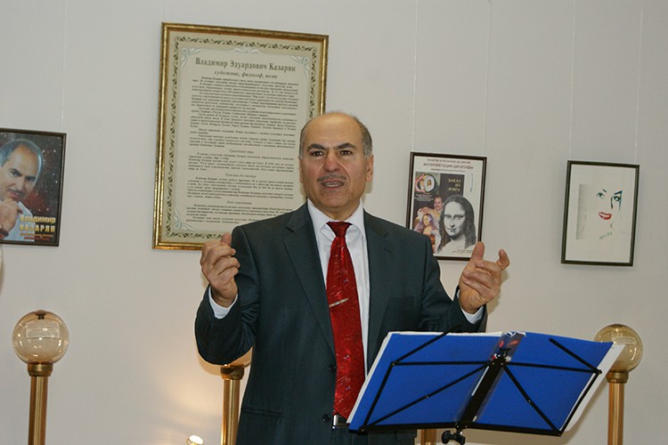 Довідка: Володимир Едуардович Казарян — видатний майстер світового мікромініатюрного мистецтва, творець витворів, що вражають своєю унікальністю, мікроскопічними розмірами, красою. Людина рідкісного обдарування, яскравий представник типу «універсальної людини». Він не тільки чудовий художник і скульптор, конструктор і винахідник, але й філософ, мислитель, письменник, композитор і поет. Його девіз — «Неможливе зробити можливим!».