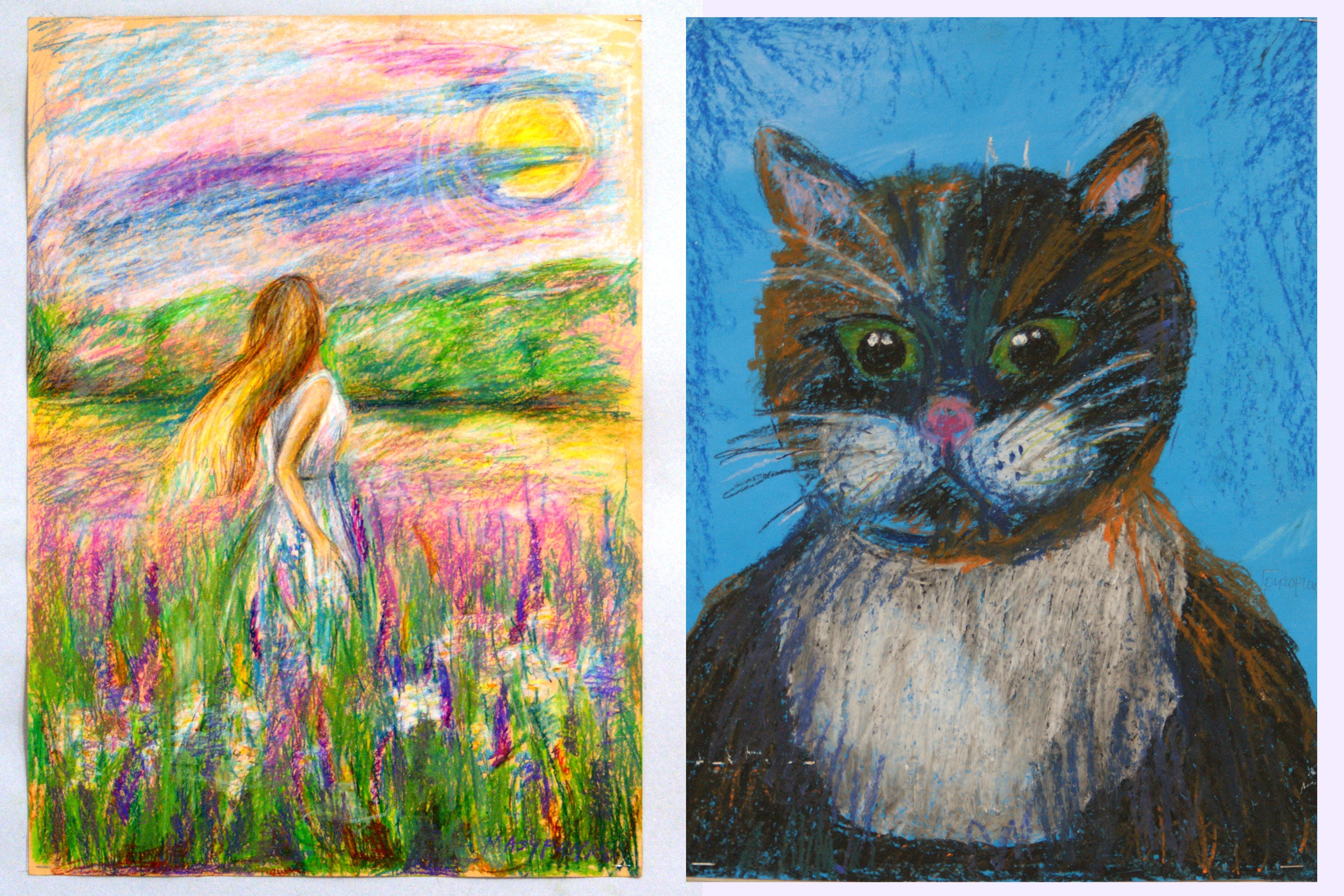 Твори олійної пастелі складаються з безлічі барвистих шарів, що просвічують один крізь інший, не зливаючись і не притушуючи кольори, що збагачуються ще й тоном основи. У яскравих і насичених гармоніях постає краса та таємничість природи в пейзажах та натюрмортах, лірична сутність людської душі у портретах.