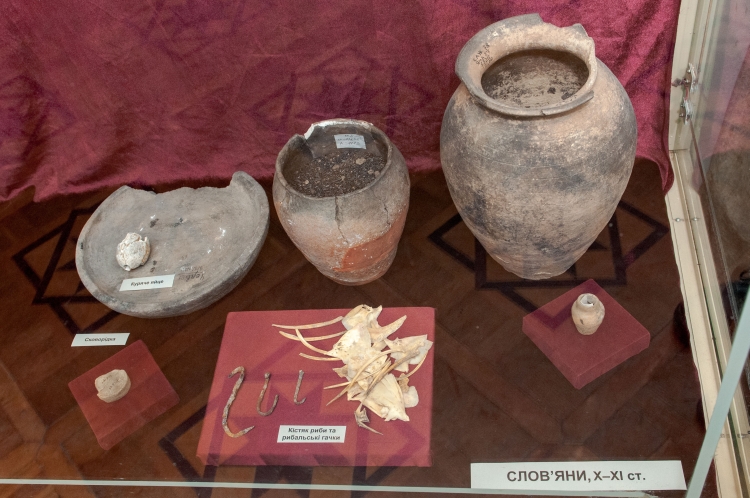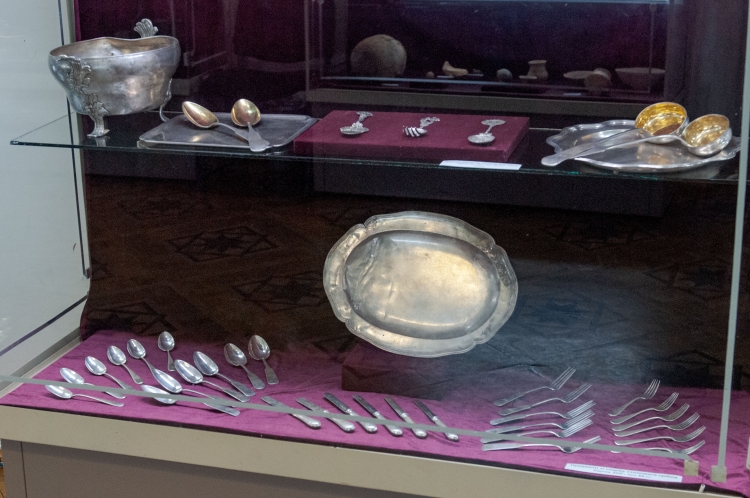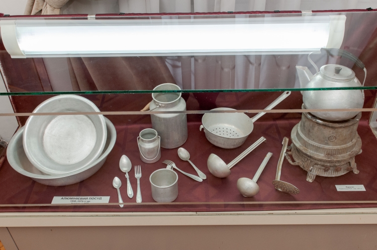 В історичній експозиції представлено кухонні і столові предмети від кам’яного віку до ХХ ст. З-поміж експонатів – унікальні археологічні знахідки, етнографічні цікавинки, вишуканий посуд з порцеляни, фаянсу, а також предмети зі скарбу столового срібла, що, ймовірно, належав родині Ґрохольських, кухонні «гаджети» минулого століття тощо.