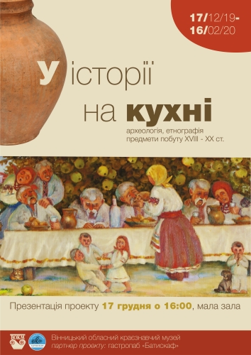 Напередодні зимового святкового періоду в Україні Вінницький обласний краєзнавчий музей розпочинає історико-гастрономічний проєкт, який започатковує новий жанр у нашій роботі. З 17 грудня 2019 р. до 16 лютого 2020 р. працюватимуть виставки: «У історії на кухні» та «Смаки натюрморта».