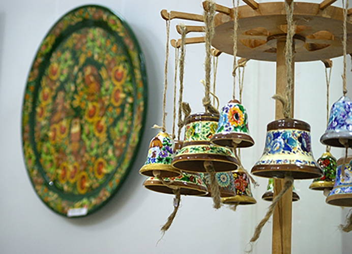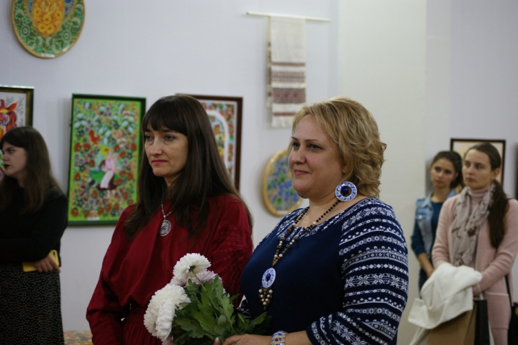 Ірина Угринчук та її послідовниця Тетяна Рихліцька застосовують свій неповторний декоративний стиль, що можна назвати «подільським», який розроблений на основі прийомів традиційного розпису, відомого в усьому світі як «петриківський». В експозиції представлено близько 40 творів: декоративних тарелів, композицій на полотні, декорованих предметів побуту, а також вишиті рушники Тетяни Рихліцької.