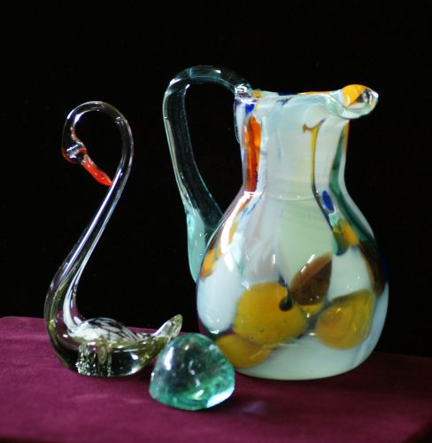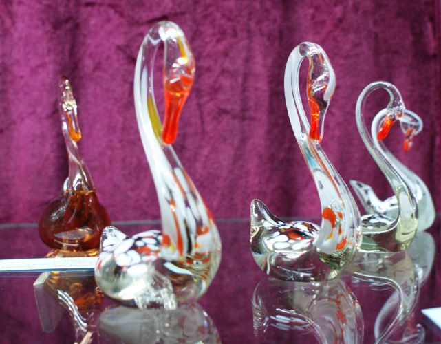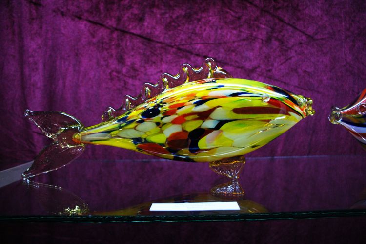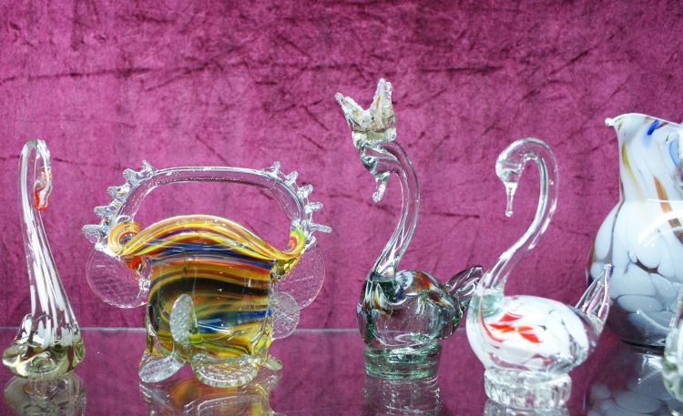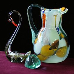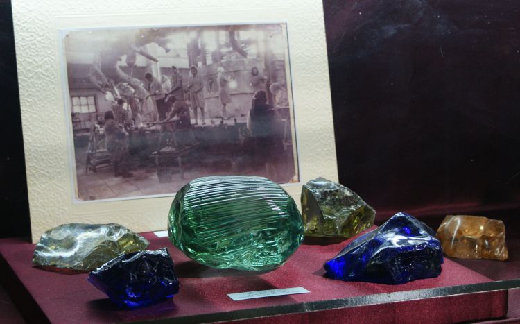 Для кольорового скла, у перші роки, додавали марганець. Виходило коричневе скло. Потім додавали селен щоб вийшло зелене, а додавши мідного купоросу виготовляли дуже красиве блакитне скло. Також додавали рубін для червоного скла. Але фарба була дуже дорогою і її майже не використовували. Усі вироби мали стандартну форму та малюнок. Різнокольорове скло робили для себе – риби, вази. Брали рубін чи червоне скло, біле скло (з медичних кахоль), змішували і робили як хотіли.