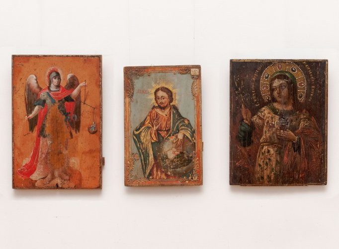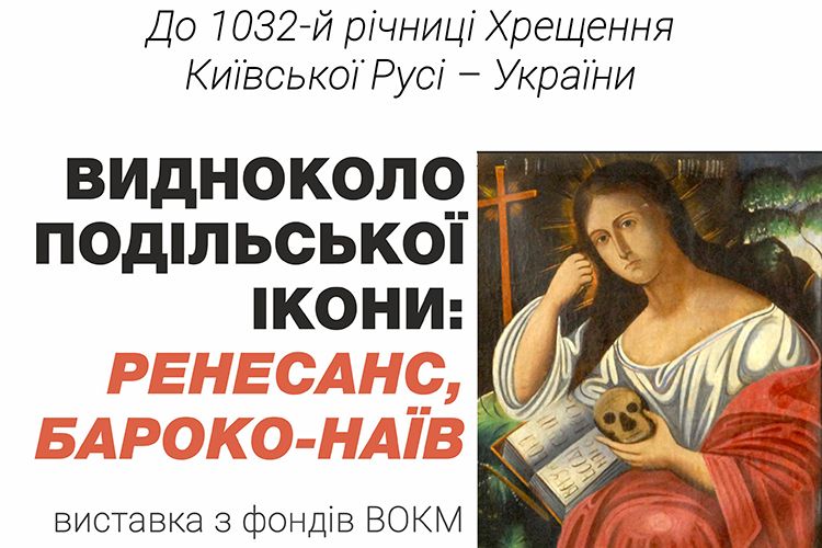 На виставці, приуроченій 1032-й річниці Хрещення Київської Русі – України, представлені 23 народні ікони, сюжети яких пов’язані з відлунням у наївному малярстві Східного Поділля кінця ХVІІІ–ХІХ ст. панівних стилів світового мистецтва.