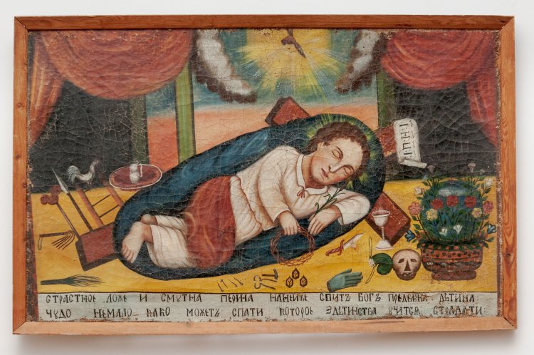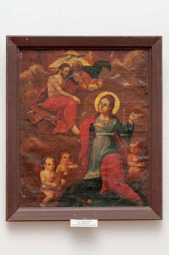 Концепція експозиції полягає у популяризації такого яскравого явища, яким є народні ікона, тому у зв’язку з конкретними творами знайомимо наших відвідувачів з історією релігійних сюжетів, які стали відомими у західноєвропейському мистецтві і згодом полюбилися подільським вірянам. Серед них «Коронування Богородиці», «Святе сімейство», «Каяття Марії Магдалини», алегоричні барокові сюжети тощо.