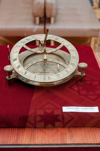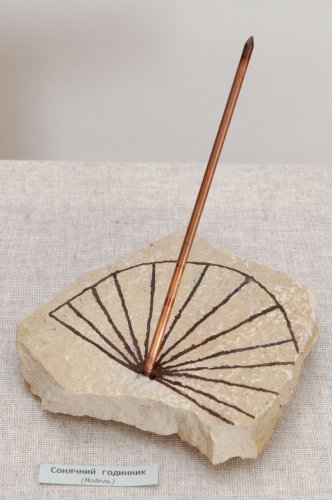 Для наших далеких предків час був цінним ресурсом. Сьогодні, як і тисячі років тому, людина живе за добовим циклом. Нам зручніше прокидатися у світлу пору і йти до сну, коли сонце ховається за горизонт. Тому з давніх-давен сонячні годинники для більшості людей були оптимальними. І до сьогодні у багатьох європейських містах, в тому числі й в Україні, можна зустріти сонячні годинники. Нині ці пристрої скоріше відіграють роль оздоблення і символізують повагу до цінного у минулому пристрою. На виставці представлено портативний сонячний годинник 19 ст., а також інтерактивні моделі горизонтального і настінного сонячних годинників, на яких відвідувачі можуть виставити час за допомогою рухомого ліхтаря.