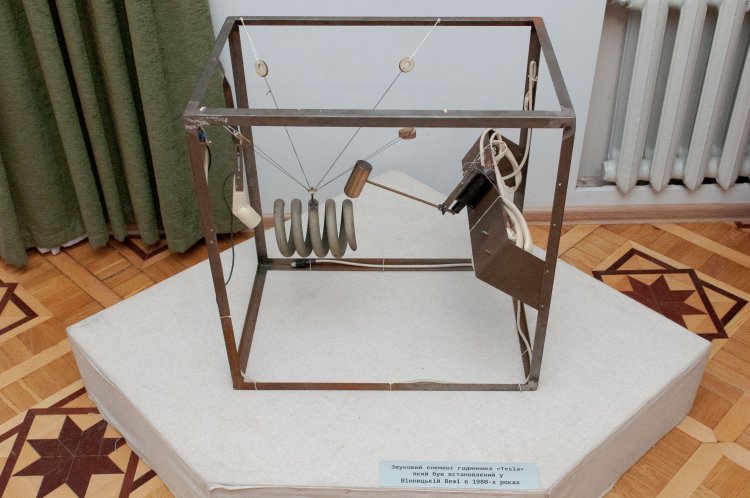 Унікальний експонат надали для виставки колеги з Центру історії Вінниці – звуковий елемент годинника «Tesla», яким була оснащена Вінницька Вежа у 1980-х роках. Пристрій не лише має чудернацький вигляд, але і дозволяє почути «голос» Вінницької Вежі у стінах музею.