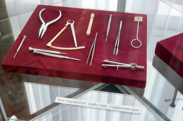Завдяки допомозі друзів музею, годинникових майстрів Ігоря Кірпічнікова та Наталі Пудайло, на виставці представлено набір інструментів, якими користувались та користуються представники цієї професії.