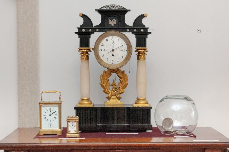 До найцікавіших експонатів належать годинники, люб’язно надані для виставки Олександром Абрамчуком – власником Кав’ярні-музею «Панъ Заваркінъ та синъ». Серед них, вишуканий настінний годинник 1910 р. всесвітньо відомого німецького виробника «Junghans». Родзинка експозиції – чудово оздоблений камінний годинник славетного швейцарського виробника «Gustav Becker», 1890 р., що містить у своєму декорі срібного орла – герб польського роду Пястів. Цей годинник оснащений системою четвертного бою, тому з великою ймовірністю відвідувачі виставки почують його мелодійний дзвін. Каретний годинник виробництва компанії «Павел Буре» особливо цікавий написом, виконаним на нижній частині: «Да указываютъ они тебе часы счастья благословенного Господомъ. 24 декабря 1897 г. Москва». Жіночий каретний годинник 1868 р. зворушує своїми мініатюрними пропорціями, його висота становить лише 8 см.