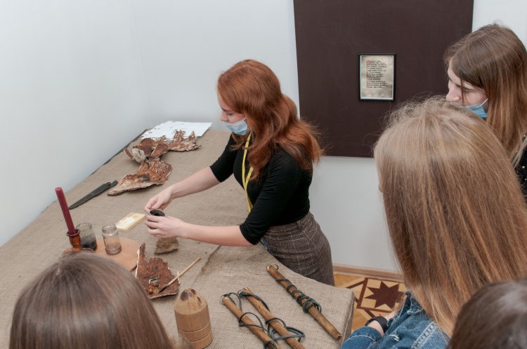 Особливістю виставки «Школа темних віків» є використання реконструкцій оригінальних археологічних знахідок. Завдяки цьому всі бажаючі зможуть пройтися слідами давніх людей та зіштовхнутись з їхніми труднощами, а також дізнатися, як грати в тавлію, пусткати кубаря, писати гусячим пером і чорнилами на папері й бересті, а стилосом (писалом) – по восковій табличці.