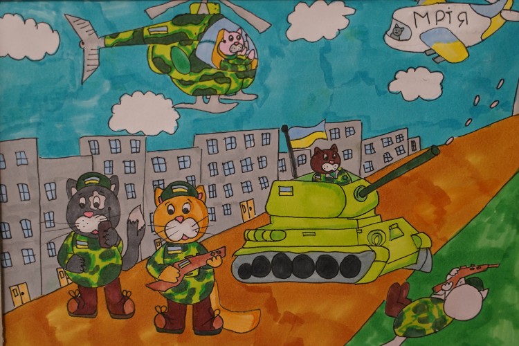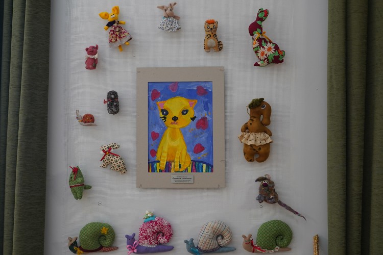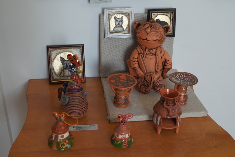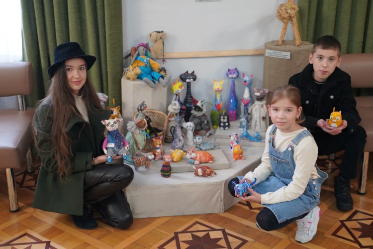 Декоративну анімалістику презентували юні автори студії «Чеширський кіт». Низку зворушливих образів створили учні Вінницької дитячої школи мистецтв, у тому числі цілу портретну галерею пса Патрона і котів – воїнів ЗСУ.