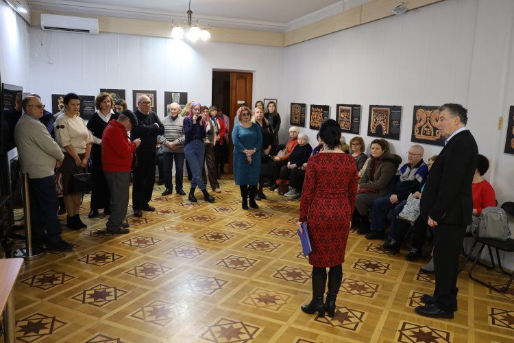 На виставці представлено 25 планшетів з авторськими роботами-«витинанками», які присвячені традиційному мистецтву євреїв України та створені на основі різьблення по каменю на надгробках-мацевах, що датуються періодом із середини XVII до початку XIX століття.