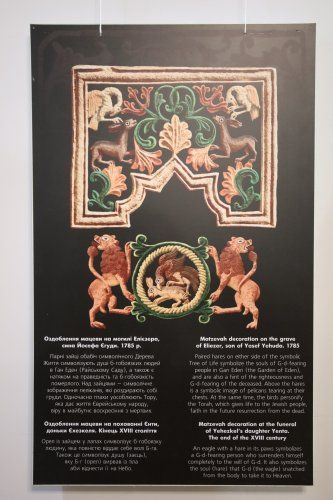 Релігійні уявлення євреїв-ашкеназі забороняли зображувати людей. Тож розповідь про небіжчика та про його майбутнє у Кращому Світі й надія на воскресіння з мертвих «шифрувалася» в рослинних орнаментах та зооморфних зображеннях.