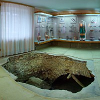 До речі, в тій прадавній печі наші пращури обіди не готували, а плавили залізо. Директор музею, Катерина Іванівна згадує, що колись чула від давніх працівників музею, що вхід в підземелля знаходиться «під похованням черняхівської жінки», але , на жаль, тоді не розпитувала докладно. Можливо, вхід знайшли ще під час формування нинішньої музейної експозиції, в кінці шестидесятих (паркет точно настеляли в той час), але, з невідомих причин, вирішили не афішувати знахідку, і замурувати вхід.