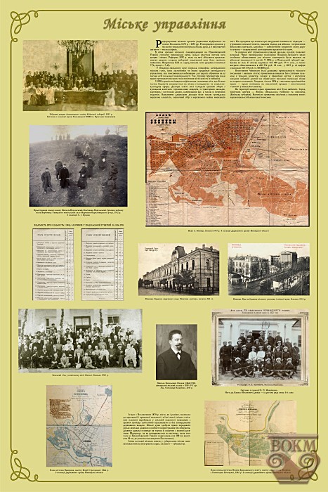 Виставка дає загальний огляд міських населених пунктів нашого краю в історичному контексті. Окремі її розділи висвітлюють роль міст і містечок як промислових і торговельних осередків, фактори міського поступу, соціальний і гендерний аспекти, національне і релігійне розмаїття, управління, благоустрій, соціальну інфраструктуру, культуру й дозвілля городян, а також природничі, історичні й архітектурні родзинки. Вона створена за матеріалами обласного краєзнавчого музею та інших музеїв Вінниччини, Державного архіву Вінницької області, з приватних колекцій.