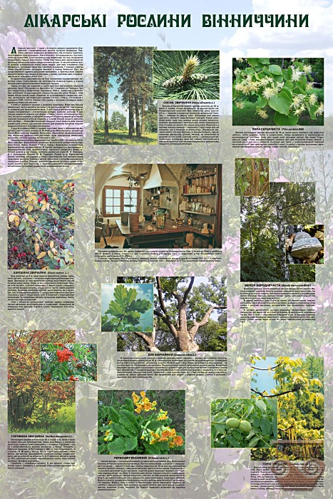 Текстові матеріали містять опис біологічних особливостей рослин, правила збору та зберігання трав і квітів, відомості про походження наукових і народних назв, що започаткувалися з легенд і міфів. Матеріали виставки розповідають про цілющі властивості трав та використання їх в народній та традиційній медицині. Особливий акцент робиться на охороні лікарських рослин, заходах по їх збереженню, які проводяться на території Вінницької області.