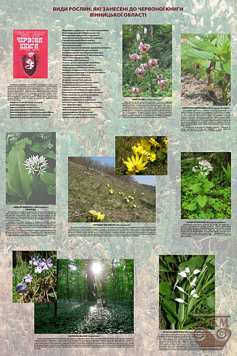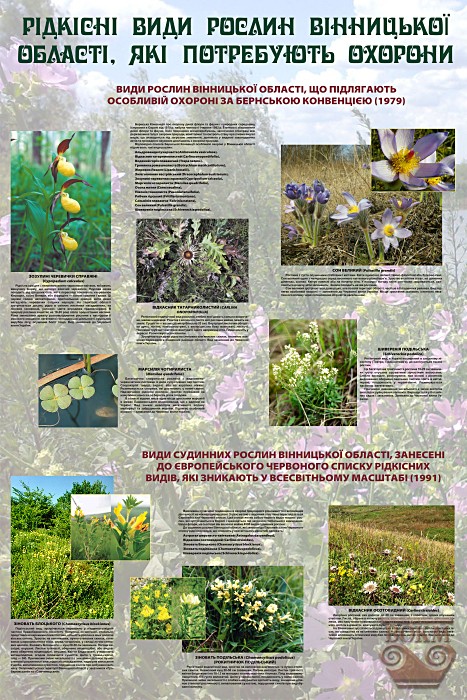 Світлини знайомлять з рідкісними та зникаючими видами рослин Вінниччини, що підлягають особливій охороні за Бернською Конвенцією (1979 р.) і занесені до Європейського Червоного списку рідкісних видів, які зникають у всесвітньому масштабі (1991 р.), що охороняються на території України та області.