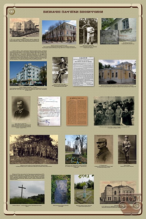 «Час бурхливих змін». В цьому розділі виставки розповідається про пам’ятки та події одного з найскладніших періодів в історії України – 1917-1920 рр. Одним із центрів революційних подій стало Поділля. Тут впродовж 1917–1920-х рр. неодноразово змінювалася влада, перебували урядові структури УНР, діяли регулярні війська та повстанці, гриміли криваві бої. Вміщено підрозділи, в яких йдеться про «Білу залу», Мури, готель «Савой» у м. Вінниця, пам’ятки, пов’язані з іменами М. Грушевського, Я. Гандзюка, Д. Марковича тощо.