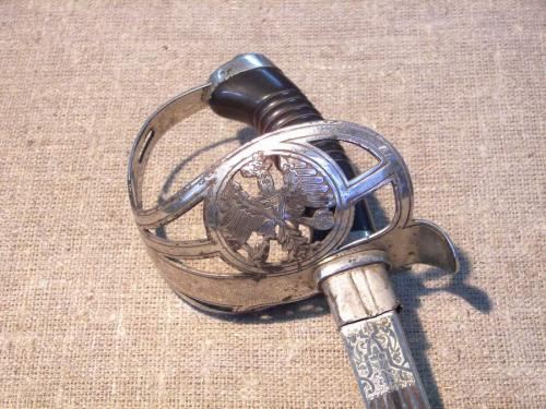 Драгунська шашка зразка 1881 року мала хрестовину, загнуту до клинка зі сторони обуха. З боку леза хрестовина переходила в дужку, що йшла до навершя.
