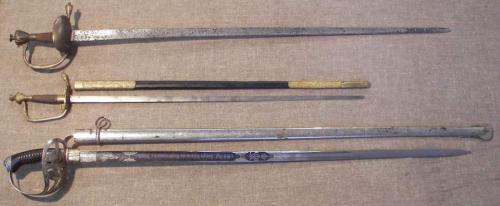 Довгоклинкова зброя з прямими клинками представлена кількома шпагами і палашами.